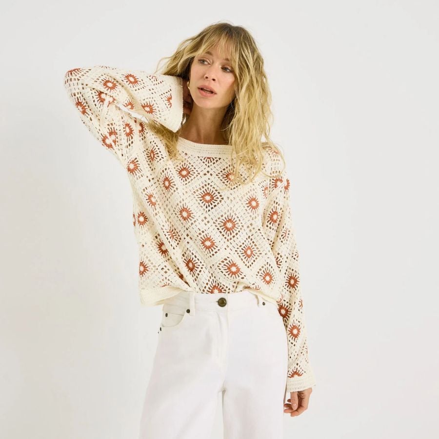 Pull crochet bicolore à col rond